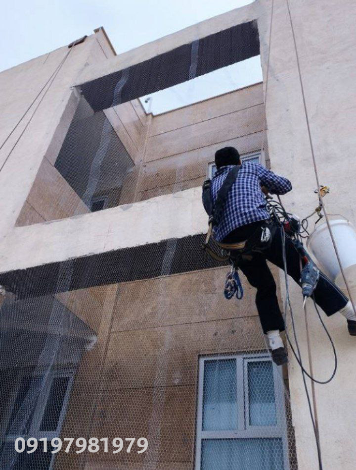 اجرای پیچ و رولپلاک و ترمیم نما ساختمان